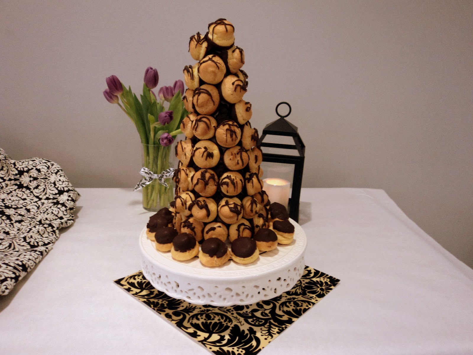 This was a good opportunity for me to try my hand at making a croquembouche. I've been wanting to try it for a long time, and with the party's theme being "french bistro" what better chance did I have?